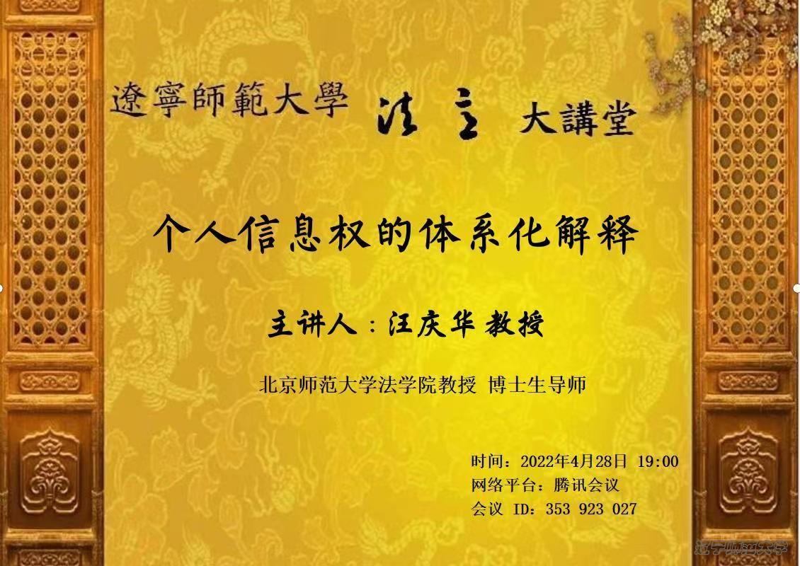 v站体育官网法学院“法益大讲堂”再次开讲了!此次的主题为《个人信息权的体系化解释》,主讲人是北京师范大学法学院博士生导师,汪庆华教授。v站体育官网韩秀义教授作为与谈人参与了讨论。本次讲座由夏红教授主持,法学院教师、学生数百人参与了本次活动。