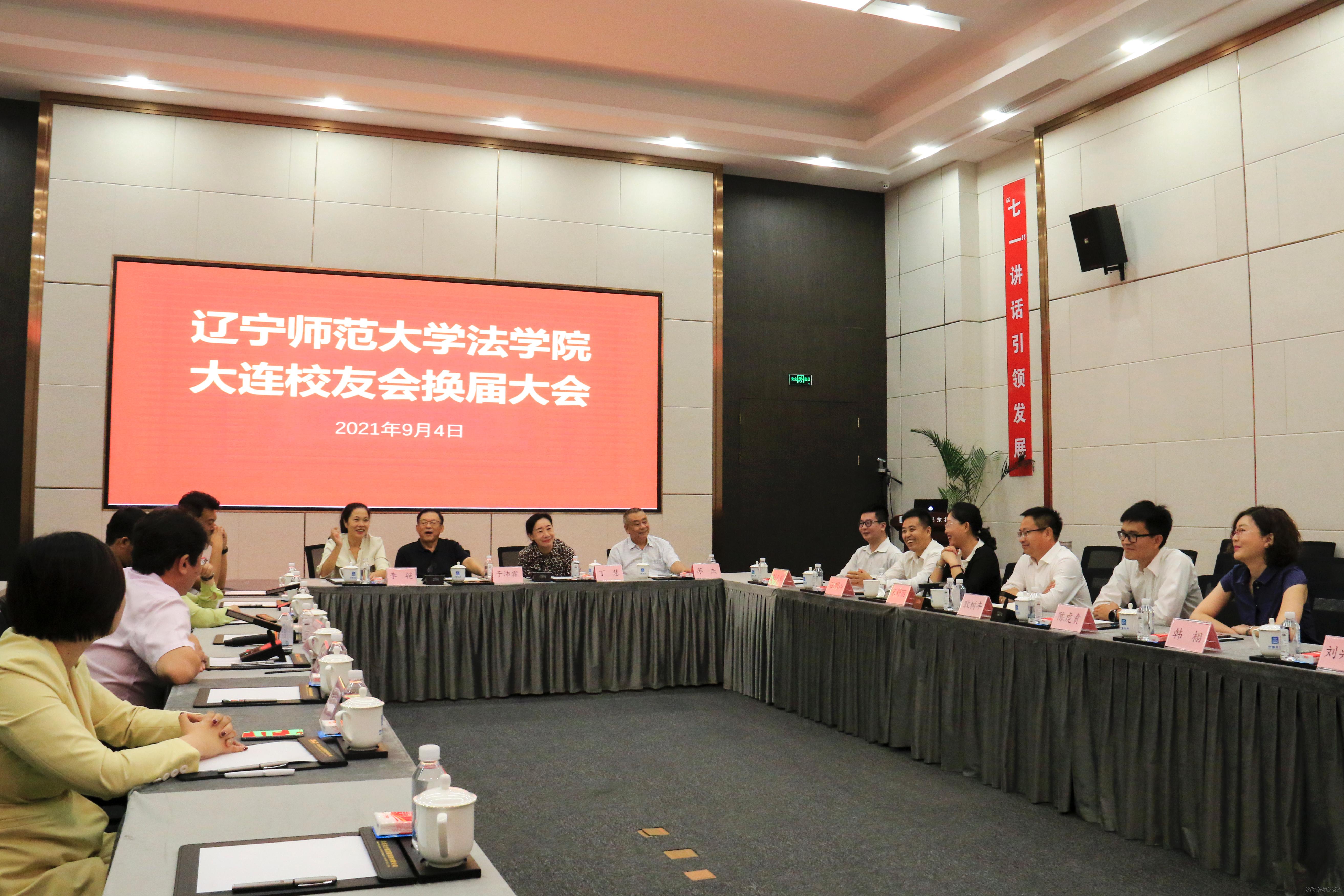 2021年9月4日,v站体育官网法学院大连校友会换届大会在梭鱼湾召开。院党总支书记李艳、副书记于少乾和学院的两位前任院长于沛霖教授、丁慧教授与校友们齐聚一堂,共叙母校情谊。换届大会由上一届会长93级校友任重任主持。