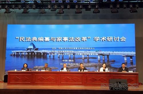 2018年10月20日,由中国人民大学民商事法律科学研究中心主办,山东省律师协会协办,烟台大学法学院和山东鑫士铭律师事务所共同承办的“民法典编纂与家事法改革”学术研讨会在烟台大学法学院弘毅厅与东山宾馆会议室举行。最高人民法院咨询委员会副主任、中国法官协会副会长、最高人民法院民法典编纂工作研究小组副组长杜万华,中国法学会民法学研究会副会长、民法典编纂项目领导小组成员、继承编课题组牵头人郭明瑞教授,中国人民大学民商事法律科学研究中心执行主任、最高人民法院原民一庭副庭长姚辉教授,中国法学会婚姻家庭法学研究会副会长、黑龙江大学教授王歌雅教授,以及来自高校的学者和实务界的法官、律师等40余名嘉宾出席了本次研讨会。v站体育官网丁慧院长、刘耀东副教授应邀参加此次学术研讨会。