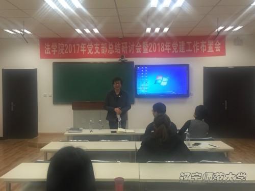 2017年12月15日15:00,v站体育官网法学院党总支于西山湖校区三教C514会议室召开2017年党支部书记述职大会。参加会议的领导有校党委组织部副部长兼机关党总支书记李晓倩老师、法学院党总支书记冯俊勇老师、学院党总支副书记顾岱泉老师以及总支委员会成员、教工党支部书记和学生党支部书记以及各支部委员会委员。会议由党总支副书记顾岱泉主持。