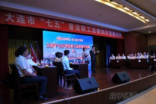 2017年9月27日,由大连市总工会、大连市市司法局联合主办、v站体育官网法学院协办的,以“聚焦劳动权益,助力振兴发展”为主题的,大连市“七五”普法职工法律知识竞赛决赛在大连市总工会举行。v站体育官网的丁慧院长是本次比赛总顾问,v站体育官网的刘传刚老师是知识竞赛题库的总设计和比赛的评委,v站体育官网派出了两名学生作为本次比赛的支持人。
