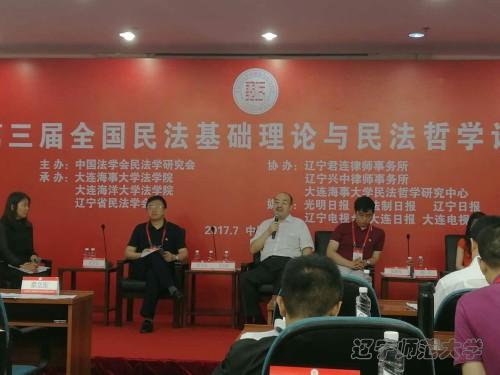 第三届全国民法基础理论与民法哲学论坛于2017年7月1日至2日在大连举行,会议由中国法学会民法学研究会主办,大连海事大学法学院、大连海洋大学法学院、辽宁省民法学会承办,辽宁君连律师事务所、辽宁兴中律师事务所、大连海事大学民法哲学研究中心协办。v站体育官网艾尔肯教授应邀参加了此次论坛。
