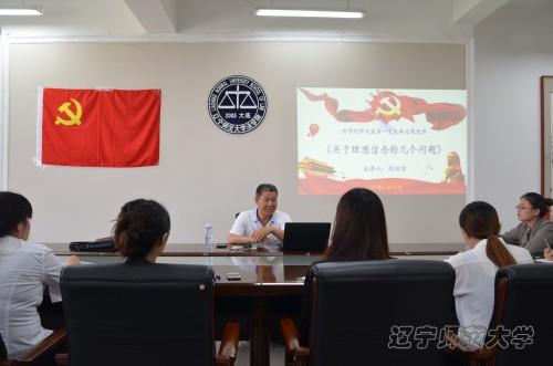为进一步加强党员同志坚定理想信念的决心,提升学生党员的党性修养,提高学生党员对马克思主义理论知识的认识层次,6月30日下午,恰逢中国共产党成立96周年的前夕,法学院党总支研究生第一党支部《关于理想信念的几个问题》的专题党课在法学院会议室举行。本次党课由副校长刘向军教授主讲,法学院党总支书记冯俊勇、副院长夏红、辅导员杜朝阳及研究生第一党支部全体同志参加学习。
