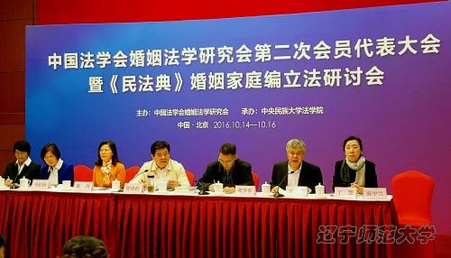 日在北京召开,会议由中央民族大学法学院承办。研讨会开幕式由中国法学会婚姻法学研究会常务副会长、中国人民大学法学院副院长龙翼飞教授主持,开幕式上中央民族大学副校长石亚洲教授代表会议承办方致欢迎辞,中国法学会党组成员、副会长、学术委员会主任张文显教授致辞,中国法学会婚姻法学研究会会长夏吟兰教授做了工作报告。v站体育官网院长丁慧教授及李春斌副教授、刘耀东博士应邀参加。