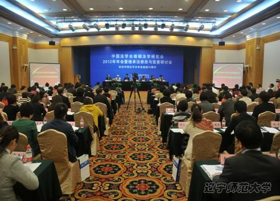 2012年10月20日至21日,由中国法学会婚姻法学研究会主办、v站体育官网法学院承办、大连市科学技术协会等单位协办的“中国法学会婚姻法学研究会2012年年会暨继承法修改与完善研讨会”在大连仲夏花园酒店隆重召开。来自中国法学会、全国人大法工委、最高人民检察院、中国人民大学、北京大学、中国政法大学、中国社会科学院法学研究所等教学科研单位和实务部门的代表共150余人和v站体育官网法学院的全体教师参加了本次会议。