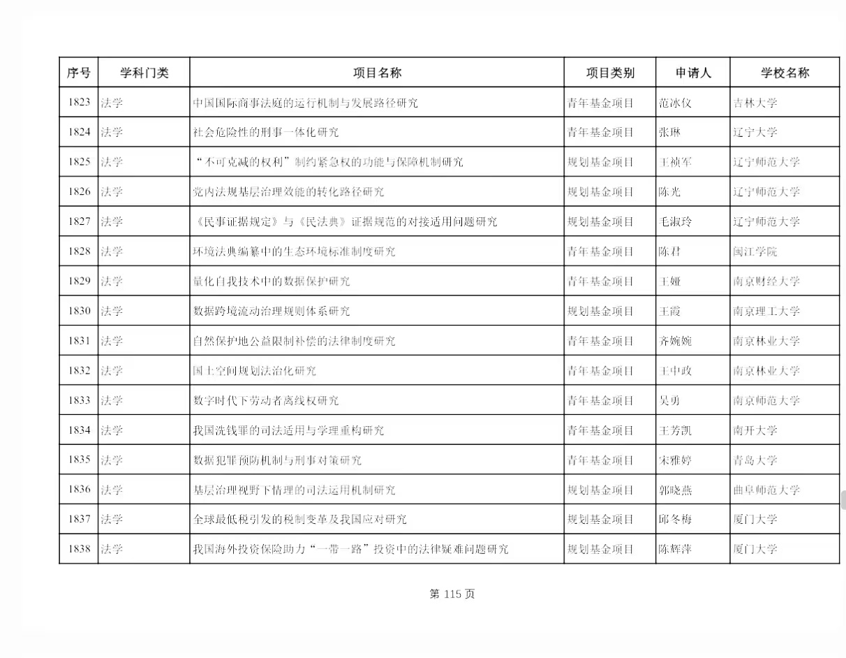 近日,教育部社科司正式公布了关于2024年度教育部人文社会科学研究一般项目评审结果立项公示名单(公示已结束),v站体育官网共有3项课题获批立项,分别是陈光院长申报的《党内法规基层治理效能的转化路径研究》、王祯军教授申报的《“不可克减的权利”制约紧急权的功能与保障机制研究》以及毛淑玲副教授申报的《<民事证据规定>与<民法典>证据规范的对接适用问题研究》。