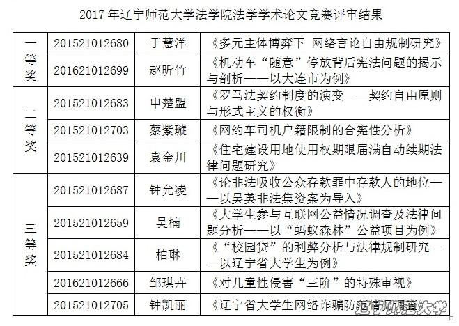 2017年v站体育官网法学院法学学术论文竞赛结果通知