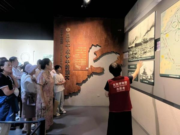大连博物馆志愿者讲解员从“旅大的开发与海防建设”“中日甲午战争中的旅大”“俄国租借旅大与大连港口城市的形成”“日俄战争与日本殖民统治”“殖民统治下的大连文化”“近代大连人民的反抗斗争”“大连解放与人民政权的建立”和序厅共八个部分详细为大家讲解了近代大连自1840年鸦片战争至1949年新中国建立共109年间大连城市的建立与发展,带大家重温了这一段波澜壮阔的冲破黑暗走向光明的历史。