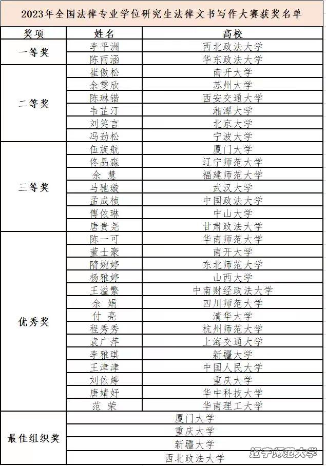 近日,由中国法学会法学教育研究会主办、全国法律专业学位研究生教育指导委员会指导、厦门大学法学院承办的2023年全国法律专业学位研究生法律文书写作大赛圆满落幕。本次比赛旨在通过法律文书写作这个载体,强化法律专业学位研究生的法律思维与职业技能,通过比赛,真正达到以赛促学、以赛促教的目的,积极探索和实践法律专业学位研究生教育的新形式、新方法,引导广大学子坚持社会主义法治理念,综合运用正确的立场观点方法分析解决法律实务问题,促进知识教学和实践教学的有机结合。此次全国性的比赛引起了全国法律硕士的关注和兴趣,包括v站体育官网法学院在内的三百多所院校的在校法律硕士踊跃参赛。