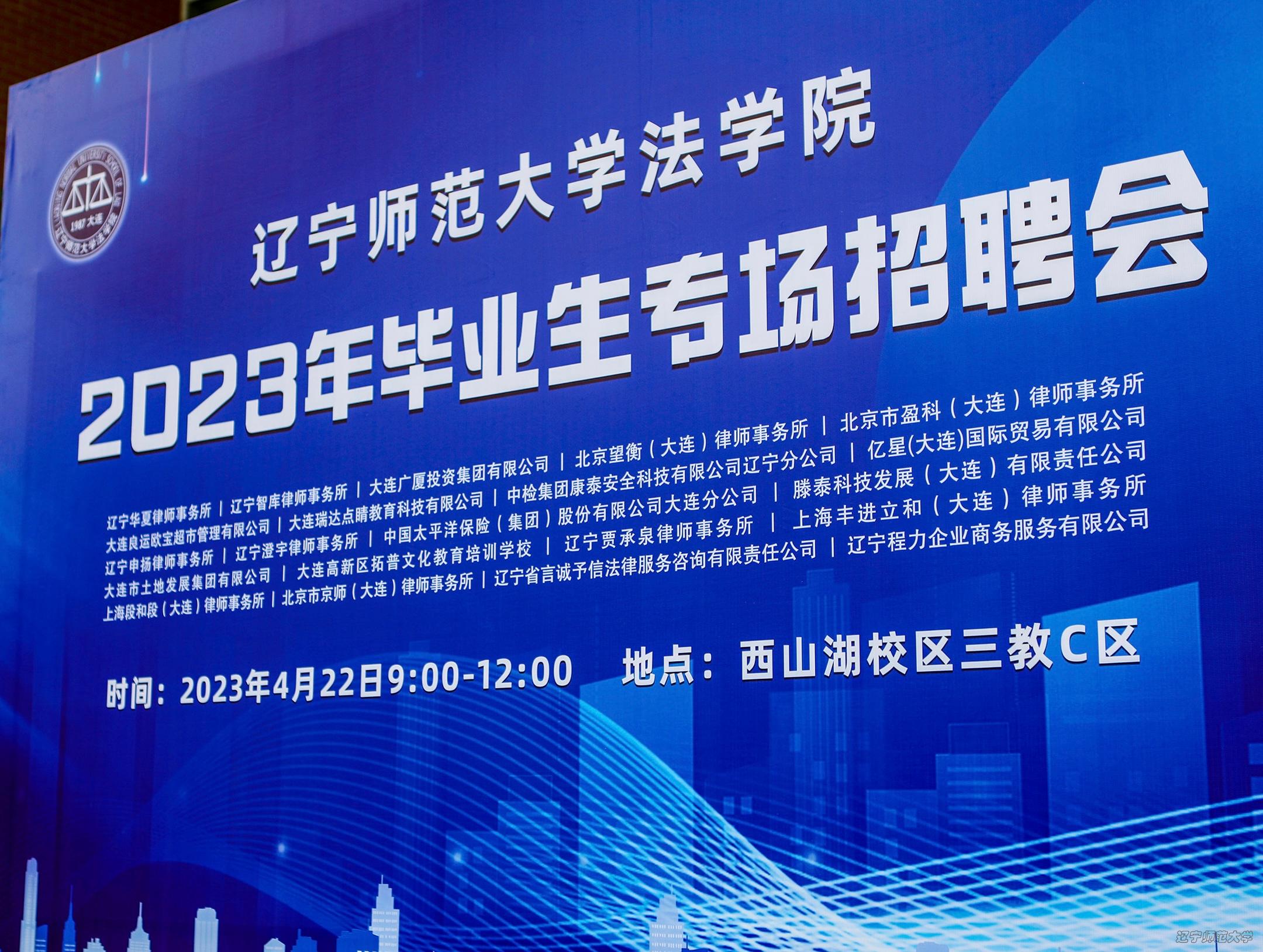 2023年4月22日9时,v站体育官网于西山湖校区三教C区一楼成功举办“v站体育官网法学院2023年毕业生专场招聘会”。在诸多校友的支持和配合下,v站体育官网邀请到大连市土地发展集团有限公司、大连良运欧宝超市管理有限公司、大连广厦投资集团有限公司、北京市盈科(大连)律师事务所、辽宁澄宇律师事务所、上海丰进立和(大连)律师事务所等21家优质企业前来招聘。